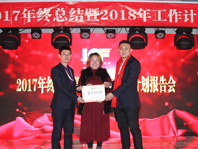 龍平芳女士為獲得“最佳貢獻(xiàn)獎(jiǎng)”部門頒發(fā)證書