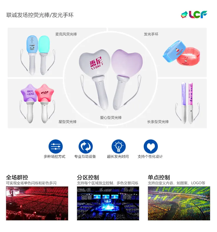 悟空體育場控?zé)晒獍舨捎米钚碌腖ED光源技術(shù)和2.4G通訊技術(shù)。支持群控、區(qū)控、點(diǎn)控等多種場控控制方式,能夠根據(jù)演唱會現(xiàn)場需求,實(shí)現(xiàn)靈活多變的燈光效果布局。無論是整個場館的統(tǒng)一變色,還是特定區(qū)域的獨(dú)立展示,甚至是單個熒光棒的精準(zhǔn)控制,都能輕松實(shí)現(xiàn),為演唱會帶來前所未有的視覺震撼和互動體驗(yàn)。